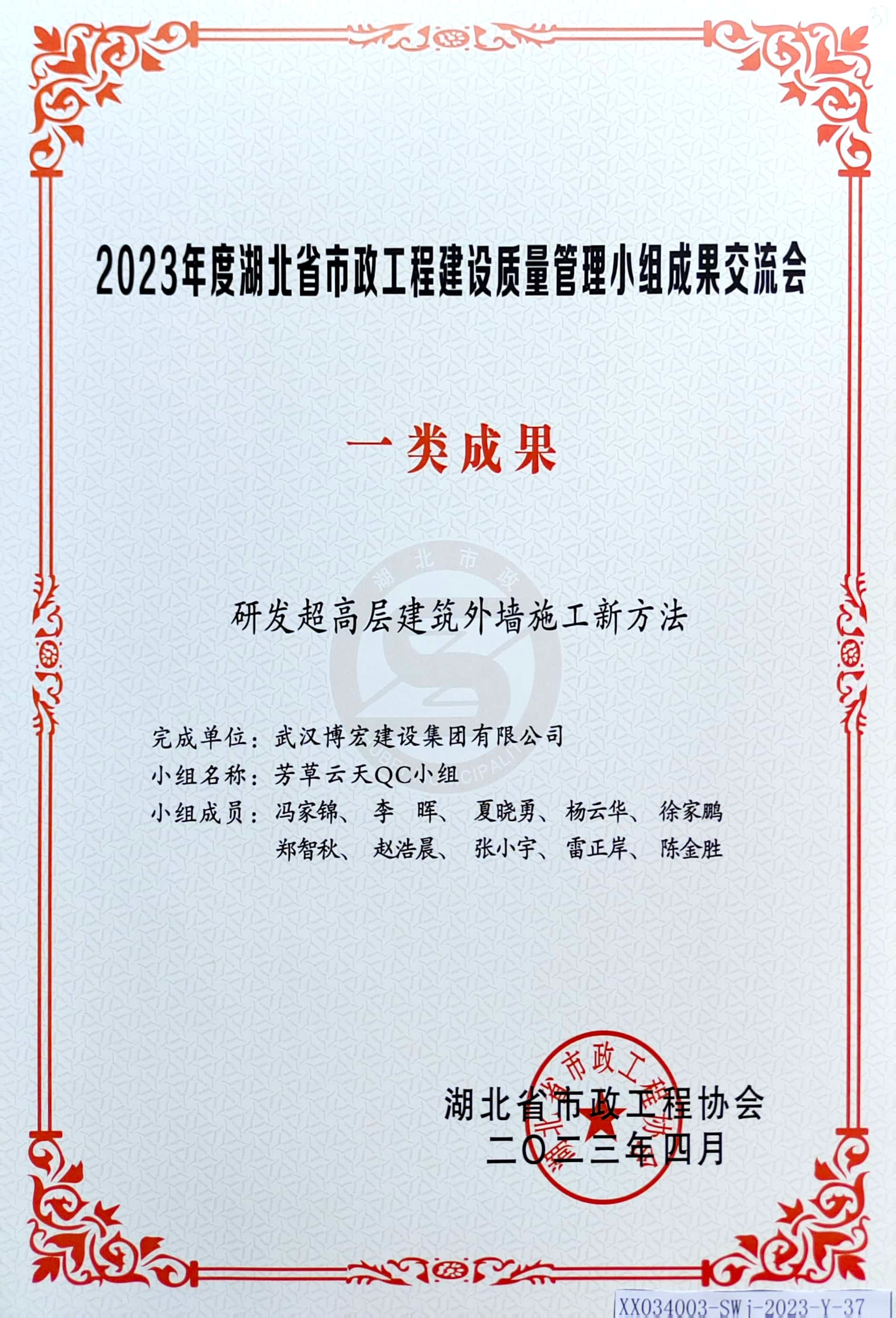 2023年度湖北省市政工程建設(shè)質(zhì)量管理小組成果交流會(huì)-一類成果