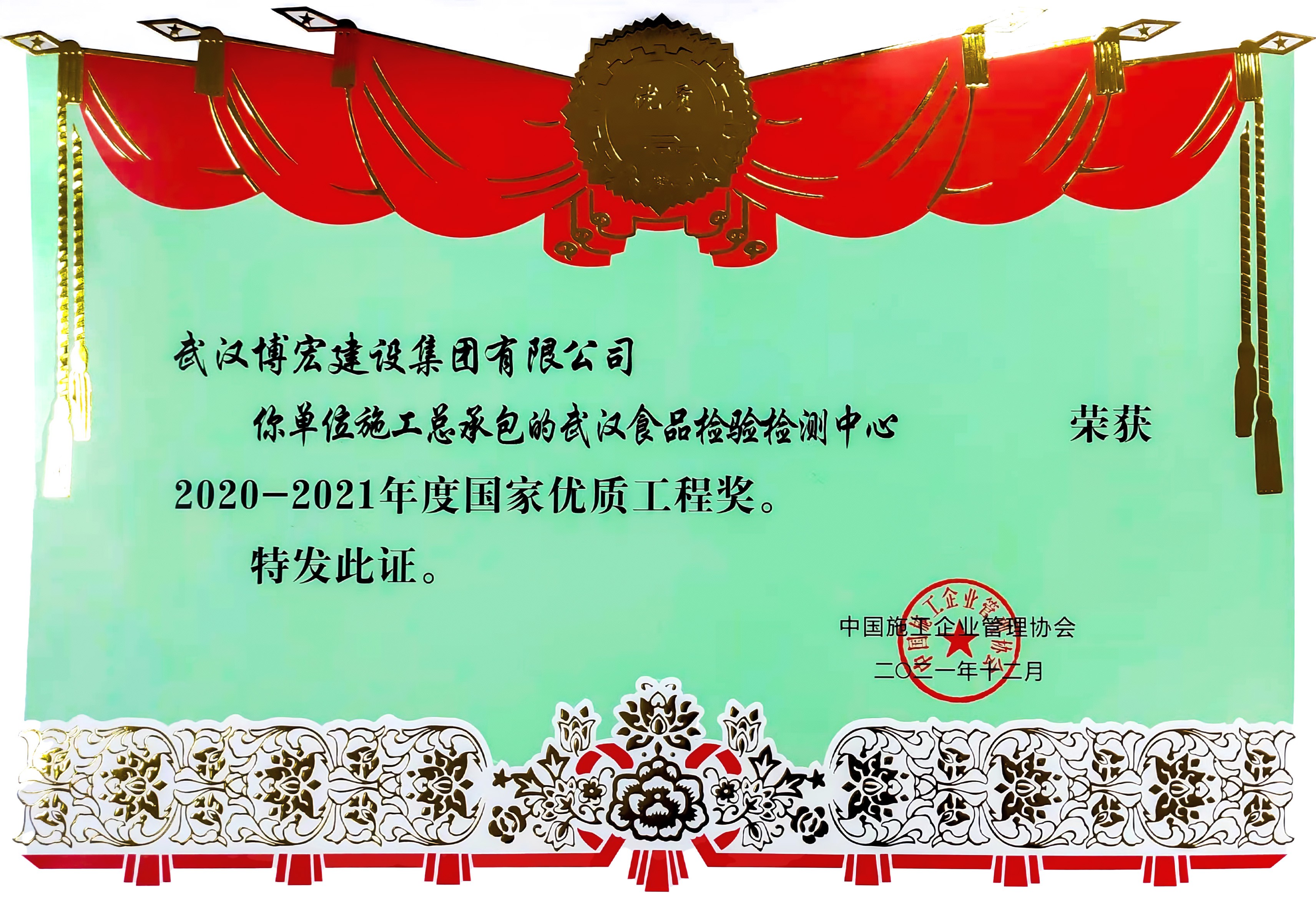 2020-2021年度國(guó)家優(yōu)質(zhì)工程獎(jiǎng)-武漢食品檢驗(yàn)檢測(cè)中心