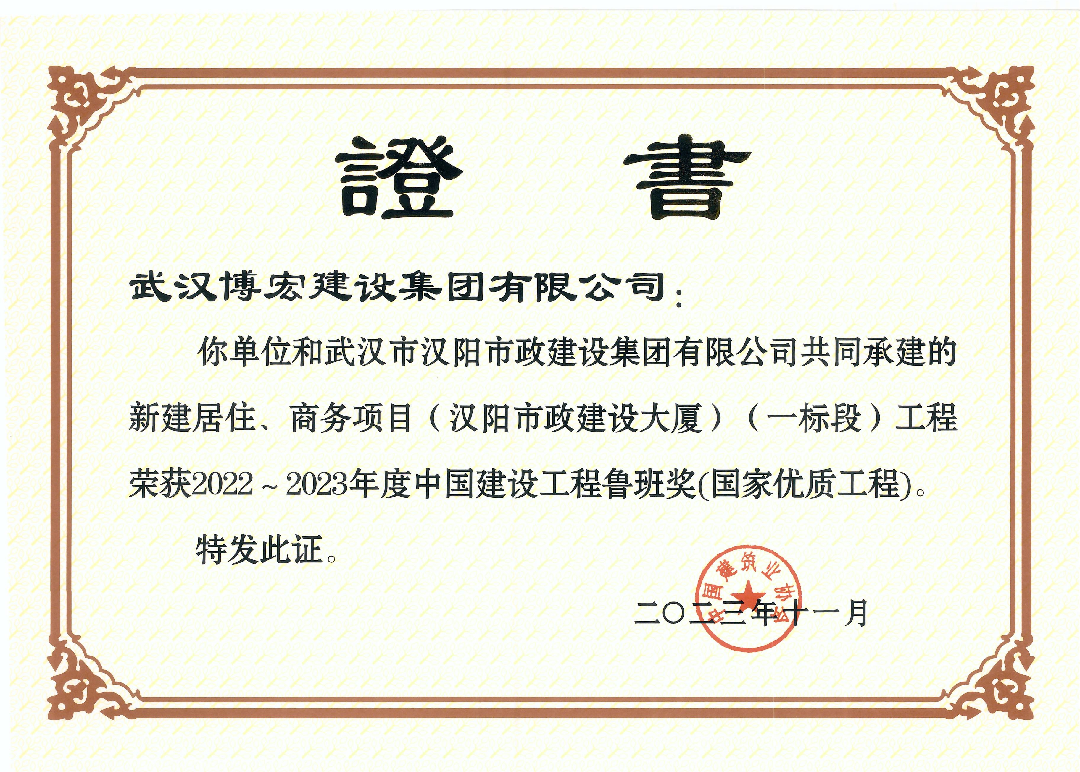 2022-2023年度中國(guó)建設(shè)工程魯班獎(jiǎng)-新建居住、商務(wù)項(xiàng)目(漢陽(yáng)市政建設(shè)大廈)(一標(biāo)段)
