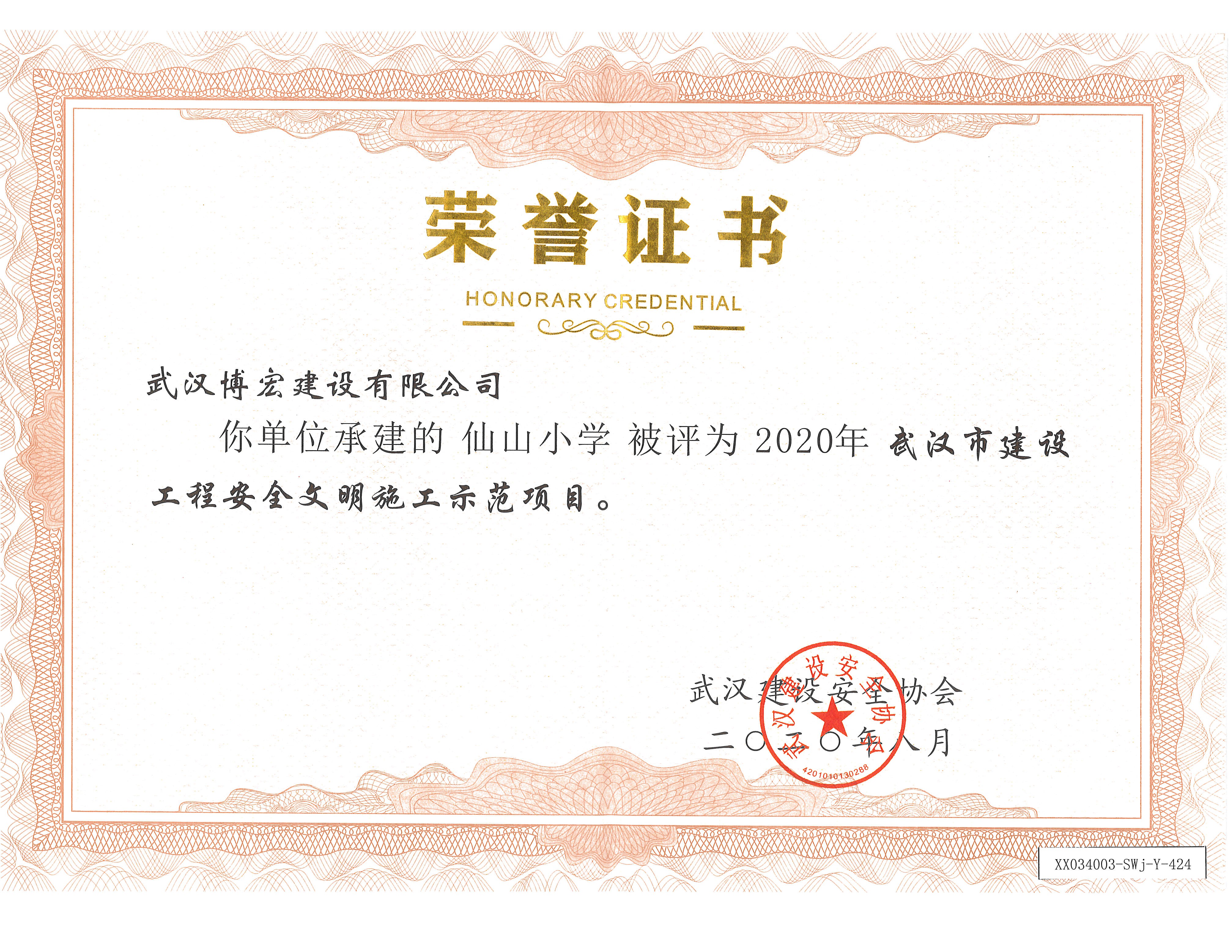 2020年武漢市建設工程安全文明施工示范項目(仙山小學)