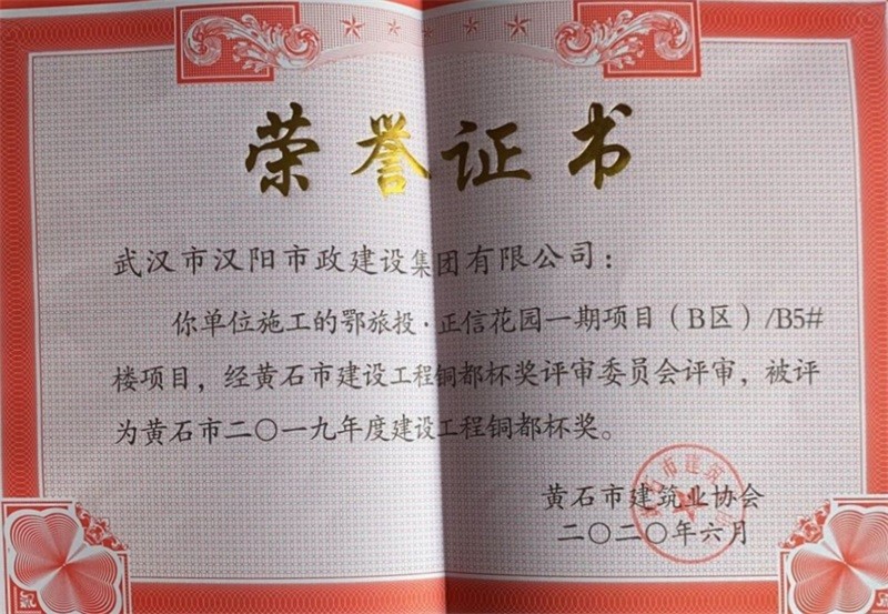 2019年度建設(shè)工程銅都杯獎(jiǎng)(鄂旅投·正信花園一期項(xiàng)目(B區(qū))B4#樓項(xiàng)目