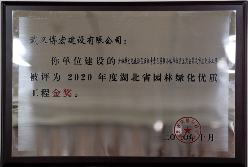 2020湖北省城市園林綠化優(yōu)質(zhì)工程金獎(jiǎng)獎(jiǎng)狀