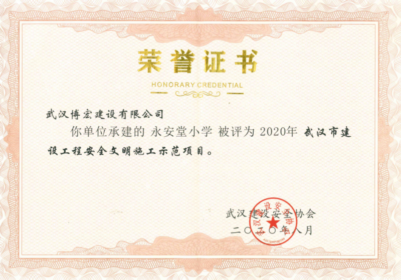 2020年上半年武漢市建設(shè)工程安全文明施工示范項(xiàng)目(永安堂小學(xué))