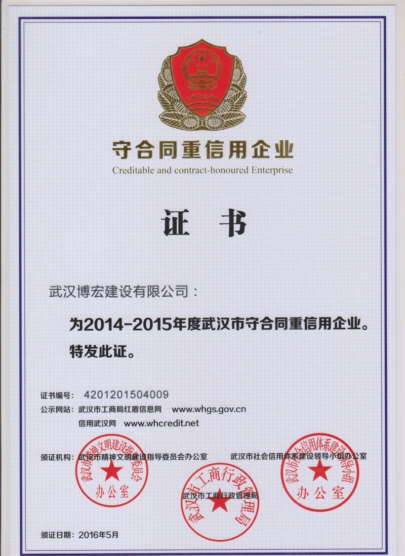 2014-2015年度湖北省守合同重信用企業(yè)
