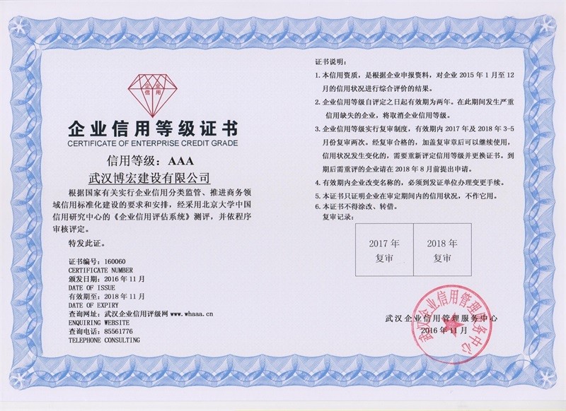 企業(yè)信用等級(jí)證書