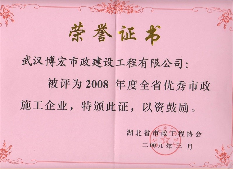 2008年度湖北省優(yōu)秀市政施工企業(yè)