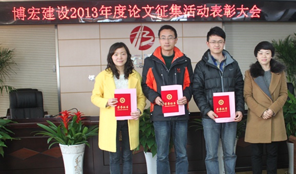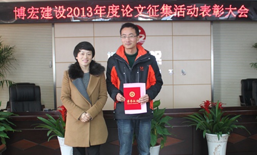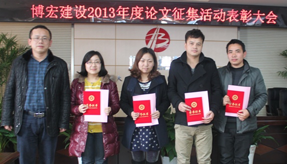 2014年3月5日下午在武漢博宏建設(shè)有限公司會議室舉行了2013年度博宏建設(shè)論文征集活動表彰大會,財務(wù)室鄒璇同志的論文《試論博宏公司如何分?jǐn)偲髽I(yè)管理費用的方法探討》榮獲一等獎。