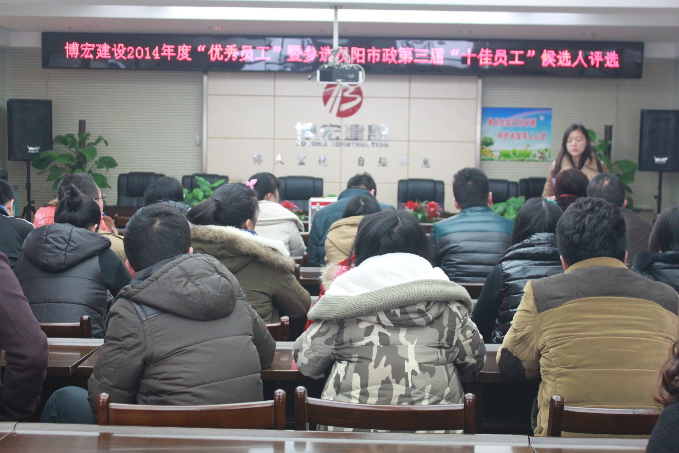 12月29日下午,武漢博宏建設有限公司在會議室舉行了2014年度“優(yōu)秀員工”暨參選漢陽市政第三屆“十佳員工”候選人評比活動,旨在弘揚先進,樹立典型,營造積極向上、爭當先進的工作氛圍。博宏公司領導班子、各部室行政人員及各項目部成員參加了評選活動。