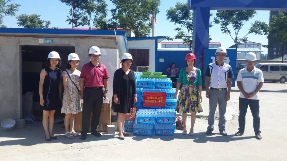 7月29日,驕陽似火,暑熱逼人,漢陽區(qū)工會喻主席、謝主任等領(lǐng)導來到博宏建設(shè)的芳草小學施工現(xiàn)場,向奮戰(zhàn)在建設(shè)一線的職工送去礦泉水、風油精等夏令防暑物資,向他們送去一份夏日的清涼。