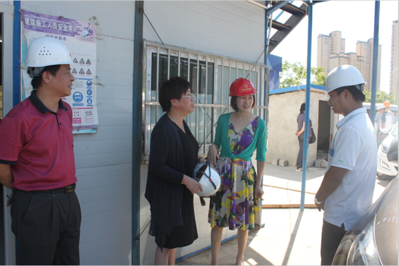 在現(xiàn)場,博宏建設(shè)黨支部書記周紅向喻主席、謝主任詳細介紹了芳草小學建設(shè)基本情況和職工工作生活情況,了解到施工單位為避開中午最高溫時段,對作息時間進行了適當調(diào)整,中午時間不安排建設(shè)者在室外作業(yè),對此喻主席表示贊許。她還向工地負責人建議,當前天氣炎熱,在外作業(yè)一定要勞逸結(jié)合、防止中暑。