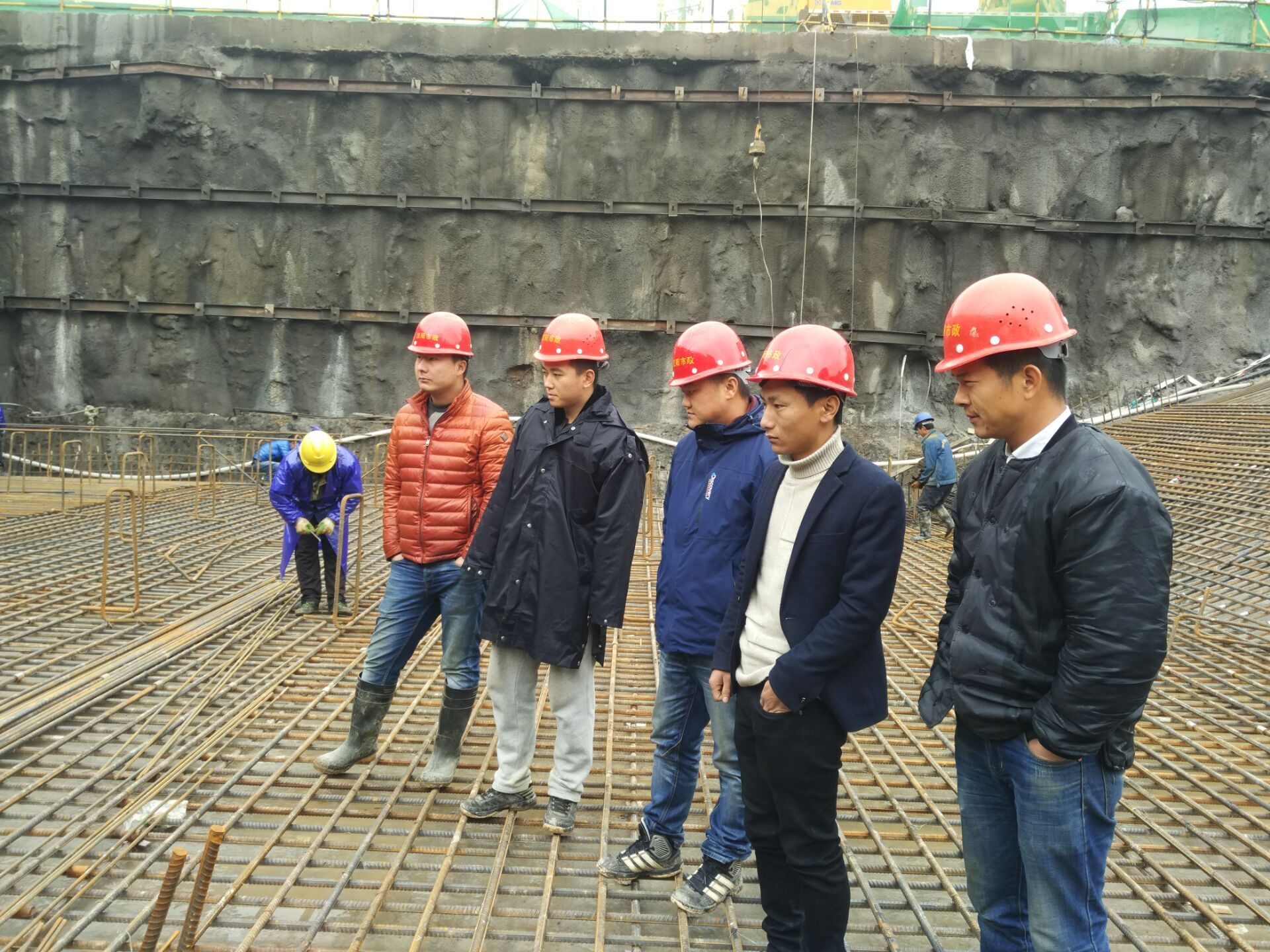 張杰(右二)指導現(xiàn)場施工