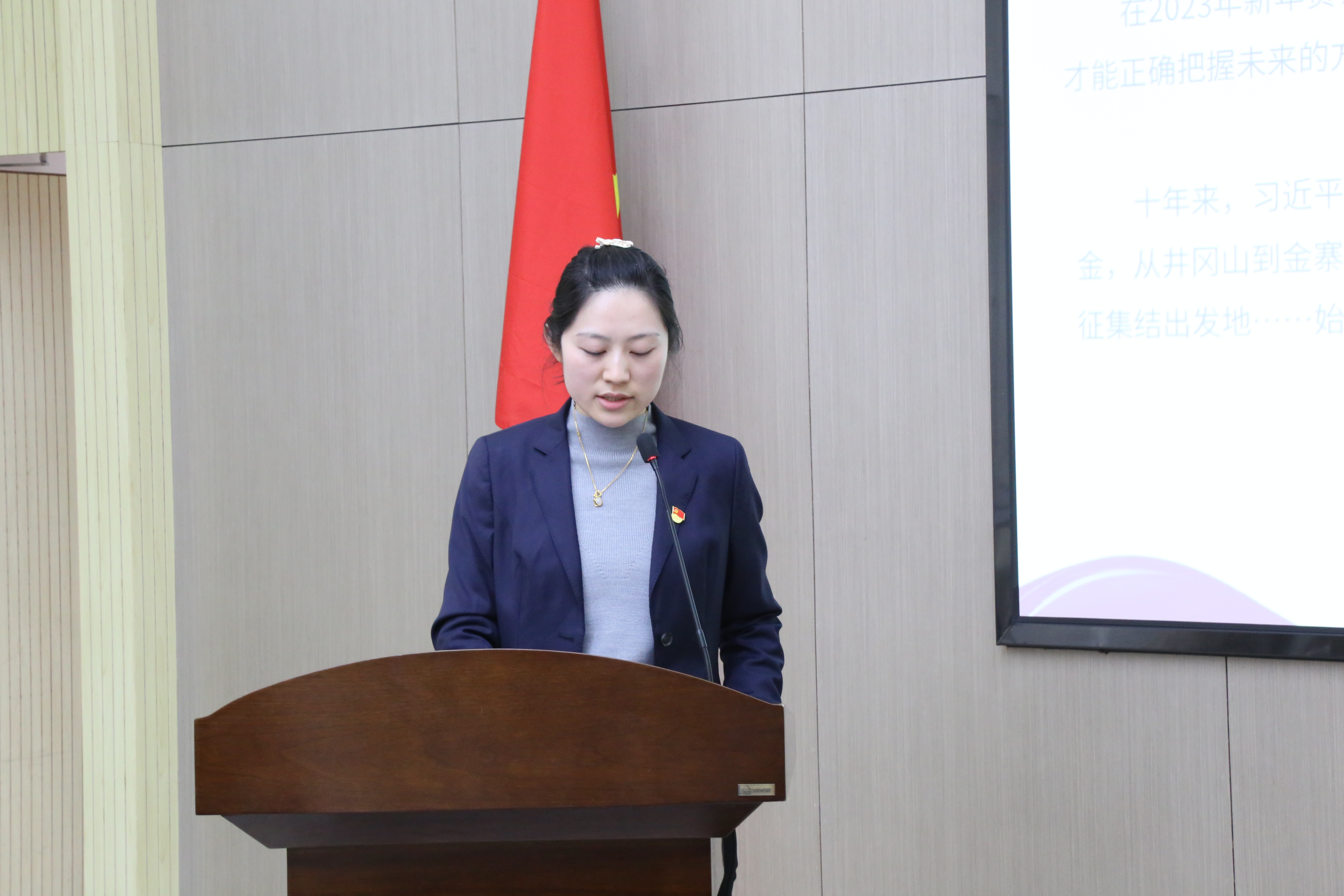 漢陽市政集團機關第一黨支部黨員洪珂為帶領全體黨員學習習近平總書記重要講話——2023年新年賀詞。講話精神也讓全體黨員更加深刻地認識到今天的中國是夢想接連現(xiàn)實的中國、是充滿生機活力的中國、是賡續(xù)民族精神的中國、是緊密聯(lián)系世界的中國。明天的中國,力量源于團結,全體黨員應當厚植家國情懷、涵養(yǎng)進取品格,以奮斗姿態(tài)激揚青春,不負時代,不負華年。