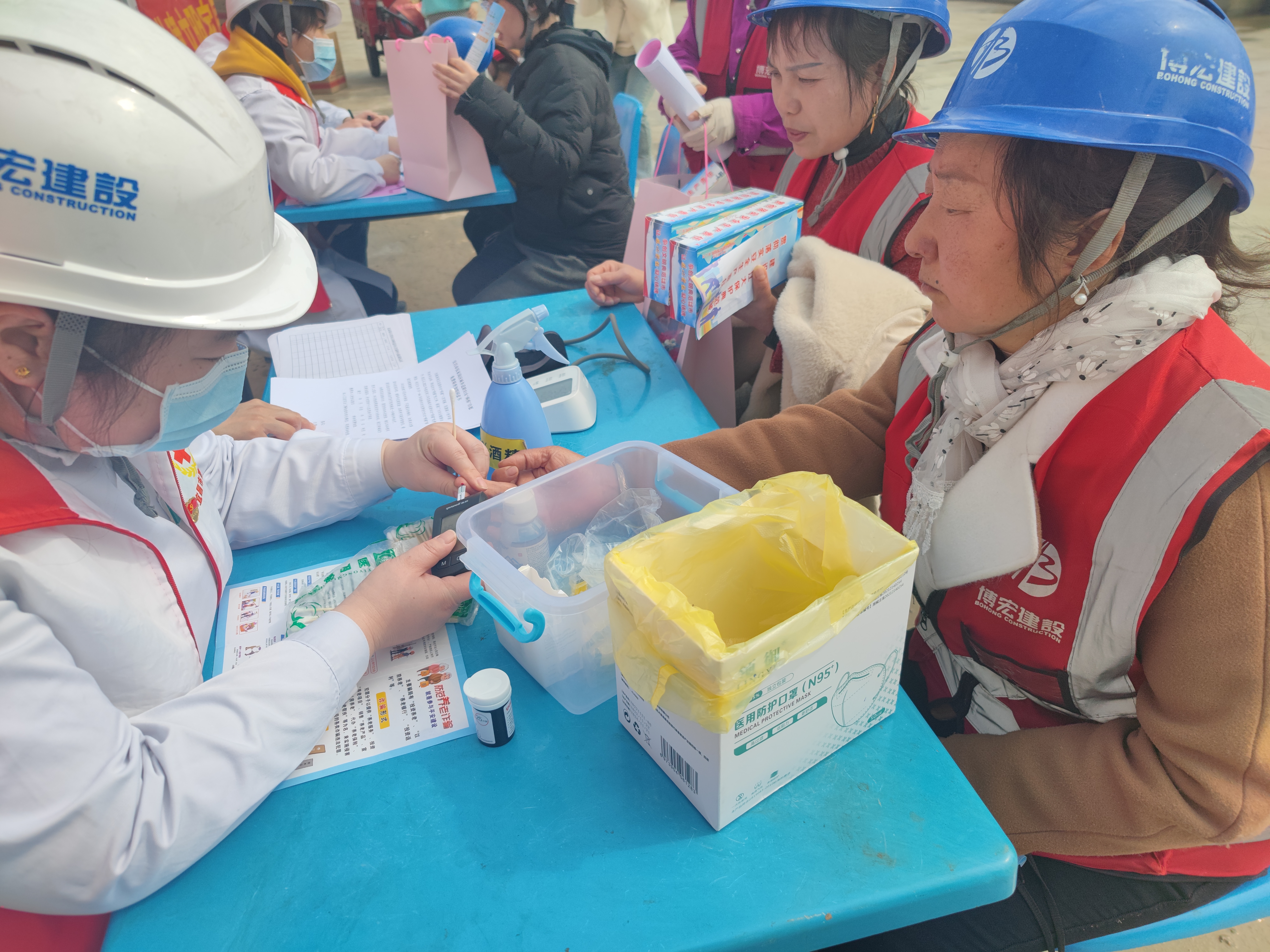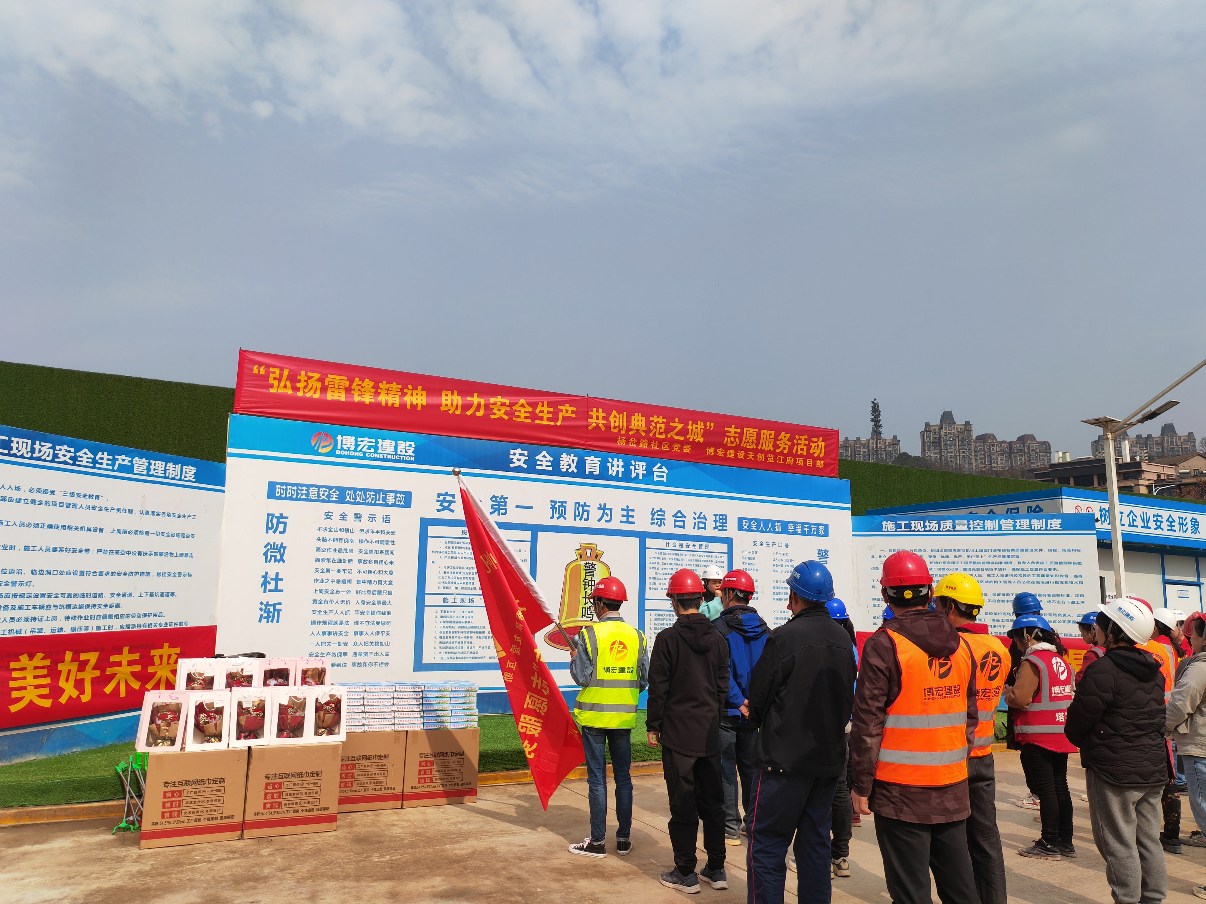 在第60個“學(xué)雷鋒紀(jì)念日”和“三八”女神節(jié)來臨之際,博宏建設(shè)集團(tuán)天創(chuàng)覽江府項目部聯(lián)合楊岔路社區(qū)黨委、楊帆志愿者服務(wù)中心開展“弘揚(yáng)雷鋒精神,助力安全生產(chǎn),共創(chuàng)典范之城”主題志愿服務(wù)活動,為堅守在項目一線辛勤耕耘的城市建設(shè)者們提供多種多樣的便民服務(wù)及健康義診,30余名職工代表、農(nóng)民工代表、社區(qū)“守心”醫(yī)療志愿者參加活動。
