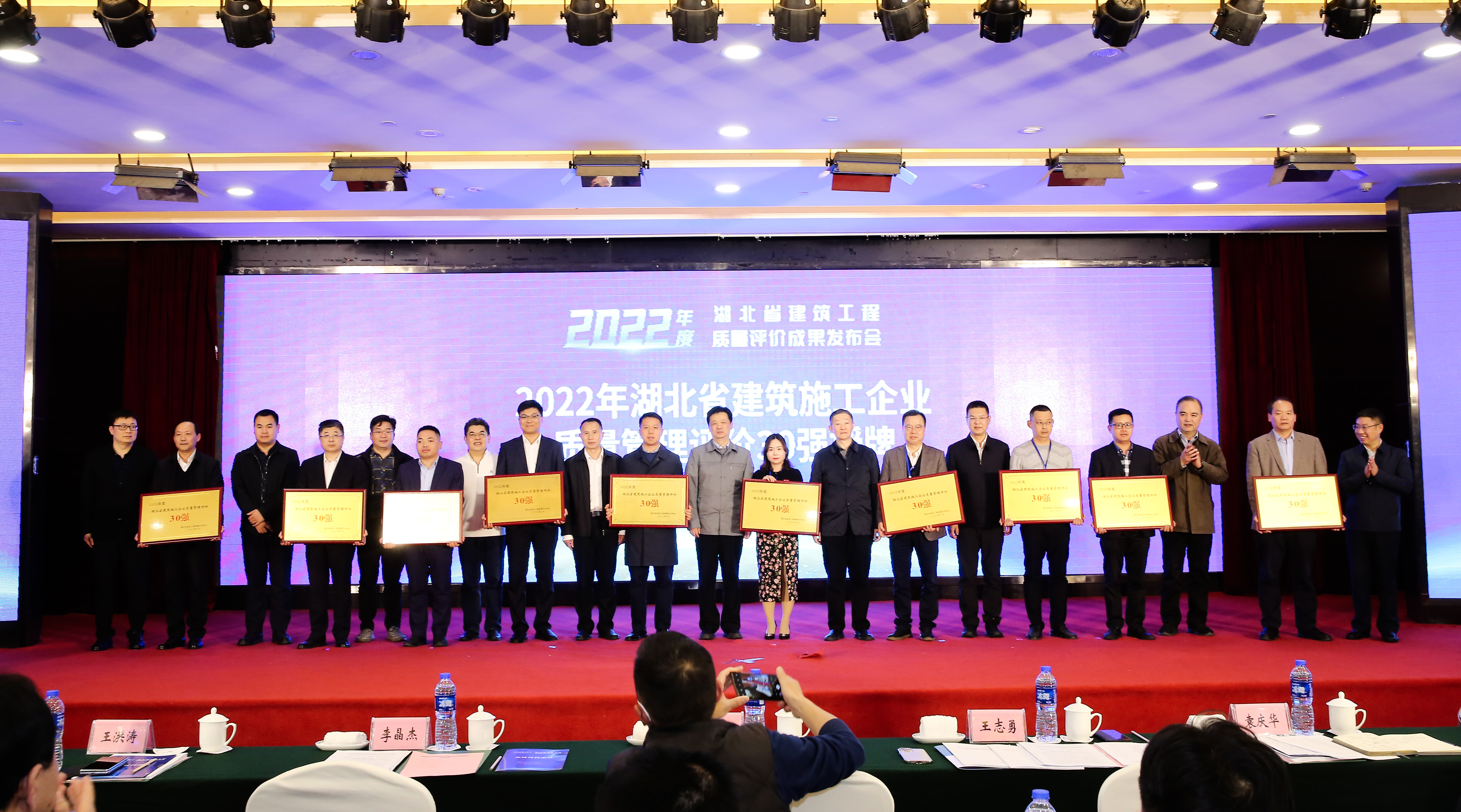 3月30日下午,湖北省住建廳在宜昌市召開(kāi)全省建筑工程質(zhì)量評(píng)價(jià)成果發(fā)布會(huì),對(duì)2022年全省質(zhì)量管理評(píng)價(jià)30強(qiáng)建筑施工企業(yè)進(jìn)行授牌。博宏建設(shè)集團(tuán)登榜“2022年度湖北省建筑施工企業(yè)質(zhì)量管理評(píng)價(jià)30強(qiáng)”。博宏建設(shè)集團(tuán)副總經(jīng)理周昌文受邀現(xiàn)場(chǎng)領(lǐng)獎(jiǎng)。