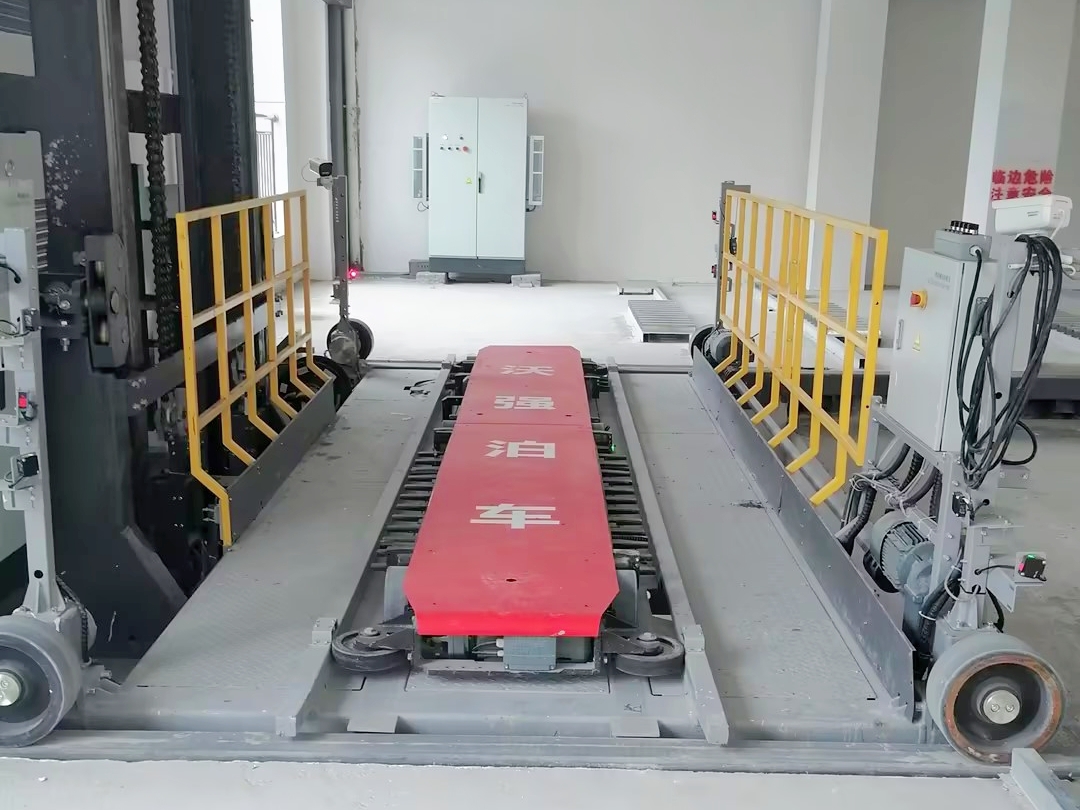 惠民苑社區(qū)服務(wù)中心改造工程EPC項目配備有地上6層的平面移動型車庫,共有127個車位,由轉(zhuǎn)盤、端部升降機、橫移臺車和梳齒搬運器等設(shè)備組成完整的停車系統(tǒng)。轉(zhuǎn)盤設(shè)置在出入口車廳內(nèi),可實現(xiàn)汽車的轉(zhuǎn)向功能;端部升降機設(shè)置在車庫內(nèi)部巷道的側(cè)邊,可實現(xiàn)車輛的豎直提升功能;橫移臺車設(shè)置在升降機內(nèi),可實現(xiàn)車輛的橫向搬運功能;梳齒搬運器設(shè)置在橫移臺車內(nèi),采用電機驅(qū)動行走輪實現(xiàn)汽車縱移運動,具有運行平穩(wěn)、承載能力強的特點;車庫總控制設(shè)備設(shè)置在一層監(jiān)控室內(nèi),用于所有停車機電設(shè)備的控制和調(diào)度。