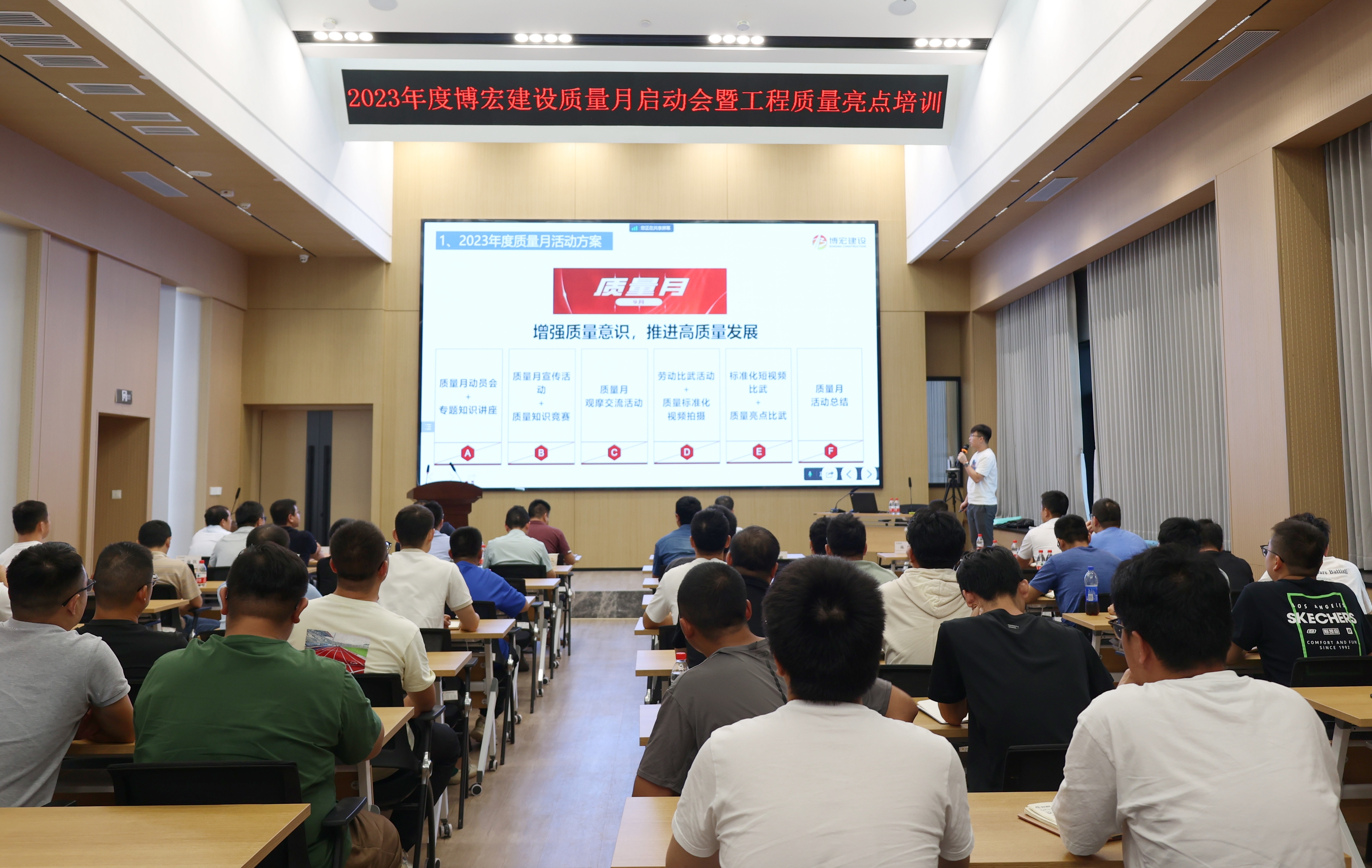 為全面貫徹黨的二十大精神,落實《質量強國建設綱要》部署要求,切實推動質量效益提升,2023年9月-10月,博宏建設集團舉辦了以“增強質量意識,推進高質量發(fā)展”為主題的“質量月”系列活動。